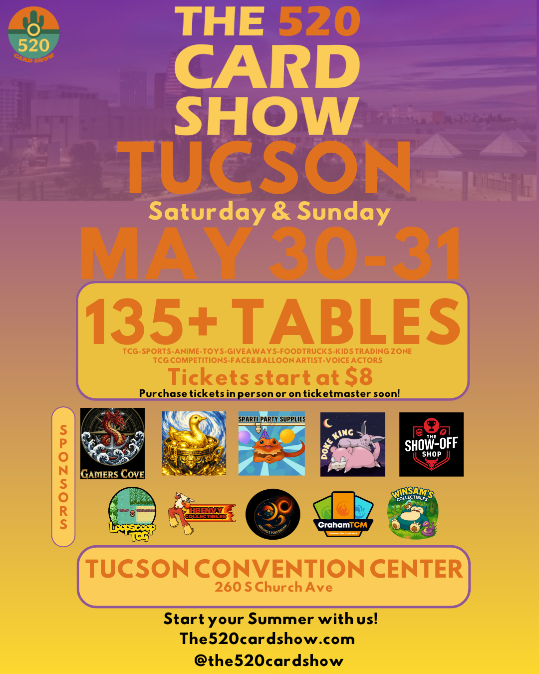 Reserve your vendor space at The 520 Card Show! Each 8-foot table includes: